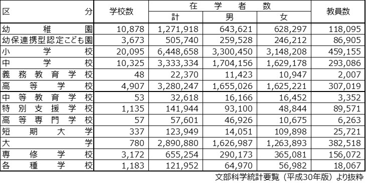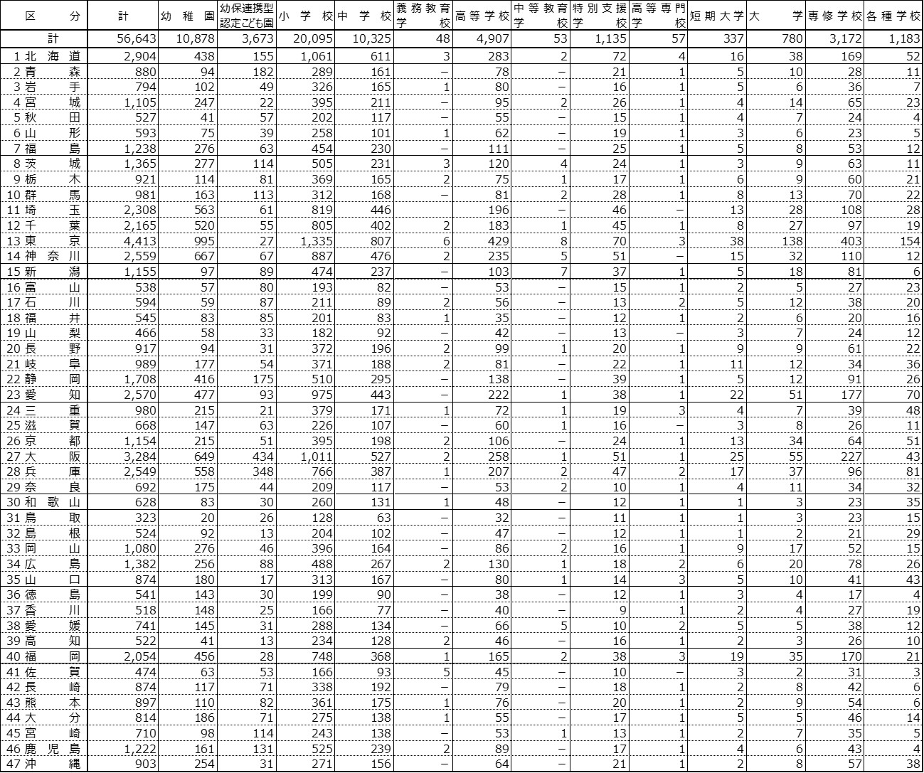 学校数・在学者数 ・教員数 と 都道府県別学校数